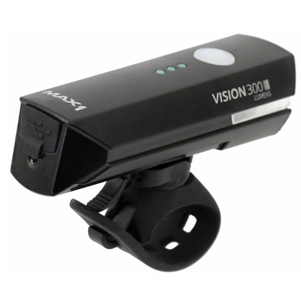 Výkonné dobíjecí přední světlo MAX1 Vision 300. Světlo s vysokým světelným výkonem 300 lumenů. Díky pružnému gumovému popruhu světlo snadno připevníte na každá řidítka.